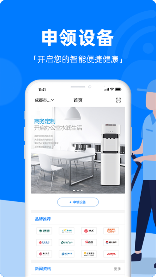 1、叮咚到APP是一款提供智能饮水机服务的软件,这里集合了智能饮水机在线申领和配送上门服务,用户可以在这里找到自己喜欢的饮水机品牌,挑选后即可在线申领,随时可以查看审批情况,审核通过会有专人送货上门,智能饮水机在水量不足时会发出警报,提醒用户加水