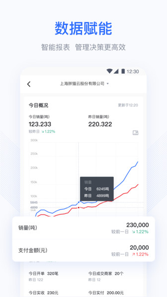 数据赋能:自定义多维分析报表,经营数据可视化呈现,支持移动端实时查看关键业务指标;