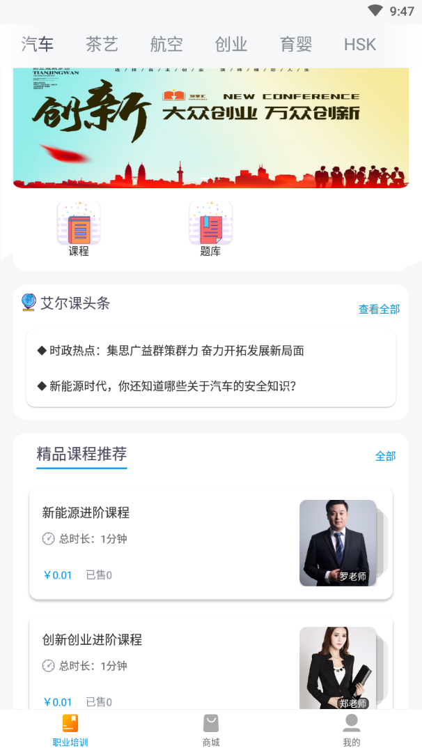 3、艾尔课app是一款专注技能提升和兴趣培养的在线学习软件,艾尔课app课程内容包含了新能源汽车、航空票务、茶艺师、育婴师,用户可随时通过艾尔课app选择自己想兴趣的课程进行学习和提升
