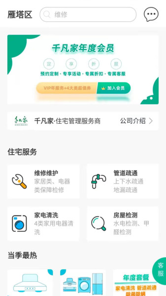 2、千凡家APP是一款提供各种生活服务的软件,为用户提供了各种维修维护、管道疏通、家电清洗等上门服务,为日常生活起居提供了帮助。软件价格公开透明,用户可以任意的挑选需要的服务一键下单,满足各种生活服务需求,让生活更加便捷