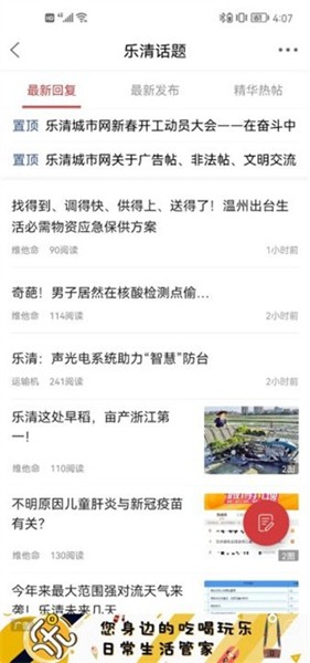 发布动态:支持上传短视频和图片,记录分享您的乐清生活点滴。