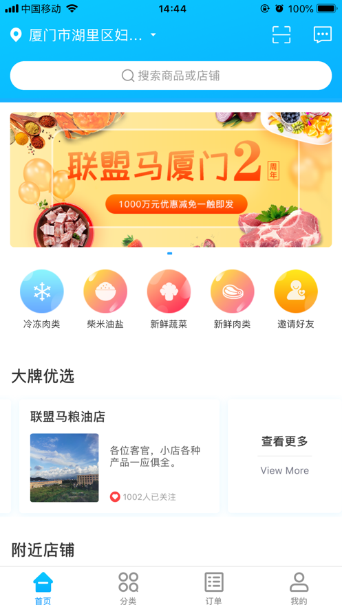 2、联盟马是一款提供高品质美食食材服务的外卖配送软件,网络本地全场所有的美食小吃和餐饮商超,方便用户随时下单订购