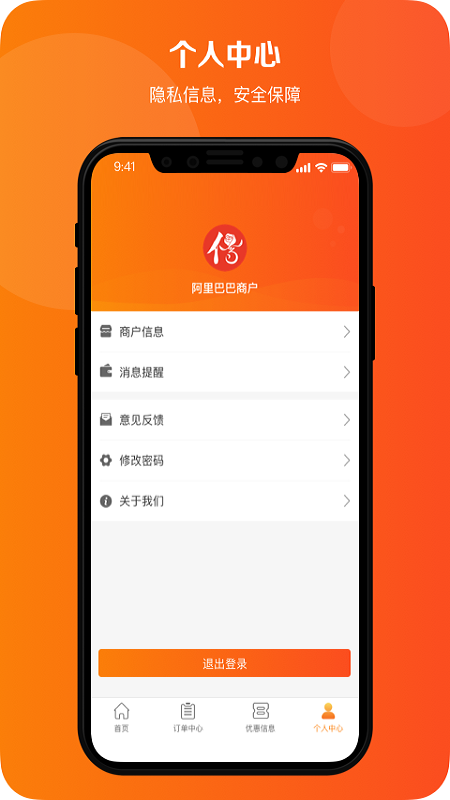 个人中心:采用多重加密技术保护商家隐私信息,确保账户安全和数据保密。