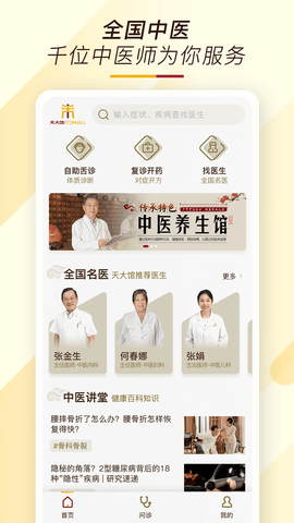 4、天大馆app下载,一款汇聚全国海量中医名师的在线咨询问诊服务平台,通过天大馆app用户不再受困于地域时间等限制,随时随地在线面诊,有需要就来下载