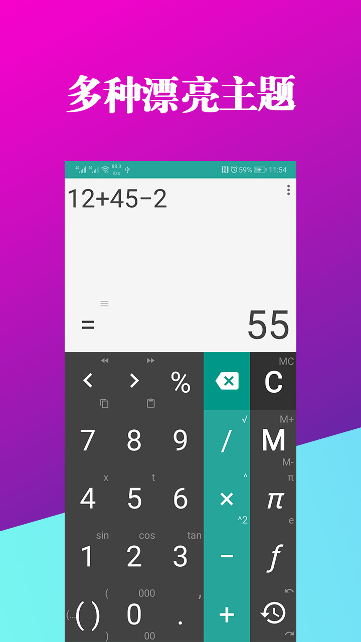 1、智能计算管家App,是一款超强的日常计算工具在简单模式下主屏幕上只有基本功能可用。计算结果保留5位小数,角度单位默认为度;提供了深色主题供选择;独立窗口模式的计算器可以让你在使用其他应用程序的同时进行计算;滑动输入Calculator的独特创意,它可提高你调用次要功能的效率