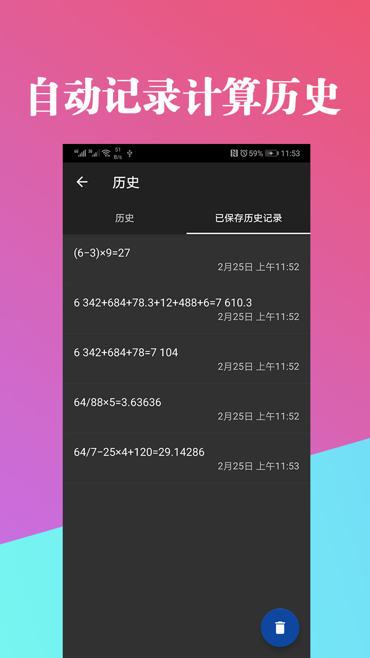 自动计算历史:自动保存最近100条计算记录,方便随时查阅和复用。