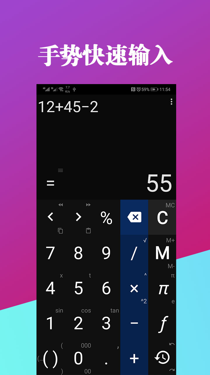 3、随时可以通过手势进行输入自定义的符号,让你感受万能计算器的服务;