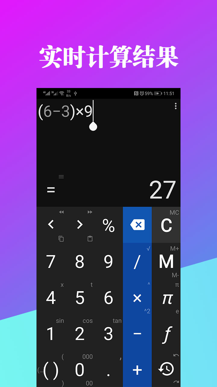 实时计算结果:所有运算即时呈现,无需等待,让您的计算过程一气呵成。