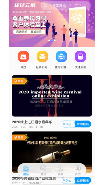 2、环球云展是一款帮助你了解国际会展的平台,通过3D线上视频,让你充分了解会展信息,软件还打破了传统的会展方式,让展会不再受时间和空间限制,在线上就可以参加会展,快捷的查看展会的展品,同时有需要的企业也可以得到帮助
