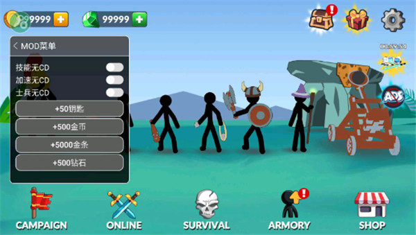 火柴人帝国之战巧妙融合了中世纪、十字军东征和火枪手时代等多元历史背景,构建出一个跨越时空的史诗战场。游戏采用经典的横版战斗模式,同时融入现代策略元素,让玩家既能重温经典游戏的纯粹乐趣,又能享受深度策略带来的成就感。作为指挥官,玩家需要从零开始建立自己的帝国,通过解锁和训练工人、步兵、弓箭手、炮兵、骑兵等多种兵种,逐步壮大军事力量。游戏特别注重兵种间的克制关系,合理的阵容搭配往往能起到以弱胜强的效果,这要求玩家必须精心策划每一次战斗部署。