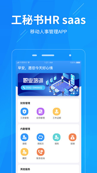 1、人事管理服务软件,在线办公服务,职业培训学习,财务管理,内勤管理,还有更多其他服务