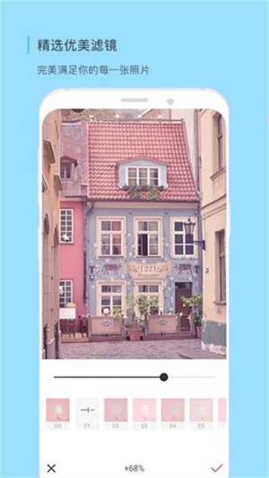 3、甜美相机推荐给喜欢拍照的用户朋友们,这款相机正如名字一般,走的是甜美范,多款日韩系滤镜,青春又治愈,除此之外,还有美颜、图片编辑、编辑贴图等多种的功能,保证让用户可以轻松拍出自己喜欢的照片,各位小仙女们就快来下载吧