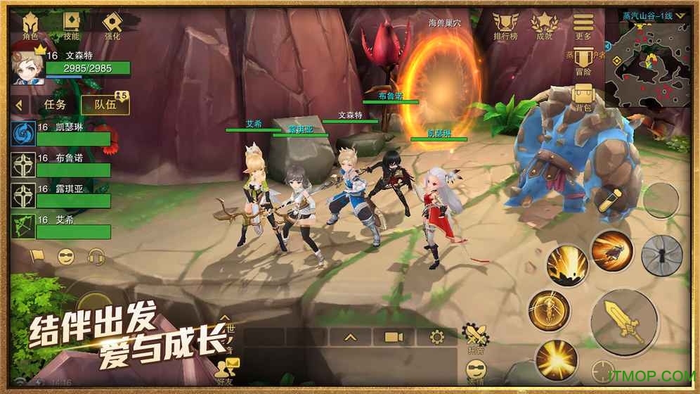 游戏提供四大基础职业和多个进阶职业,玩家可以组建自己的冒险小队,体验不同职业的配合乐趣。野外捕捉系统让玩家可以收服各种Q萌的怪物作为宠物,强大的BOSS也能被驯服成为拉风的坐骑。操作方面采用摇杆+点触双模式,满足不同玩家的操作习惯。时装系统完全免费,玩家可以通过收集材料打造个性装扮,展现独特风采。