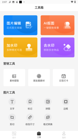 要去除青柠海报设计APP中的水印,用户可以按照以下步骤操作:首先打开APP,在主界面找到并点击"工具"选项;然后在工具菜单中选择"去水印"功能;系统会提供多种去水印方式,用户可以选择颜色涂鸦工具,通过智能填充的方式完美去除水印痕迹,同时保持画面整体协调性。