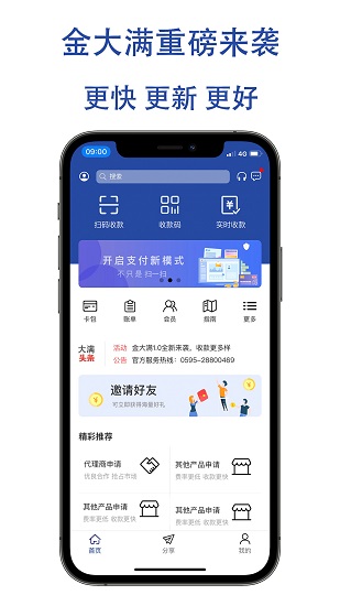 金大满拥有多项特色功能,能够全方位满足商户需求。首先,它提供广泛的服务范围,无论是零售、餐饮还是服务业,都能找到适合的功能模块。其次,收款效率极高,交易完成后可以立即查看账户动态,资金流向一目了然。软件内置海量实用功能,商户可以根据实际经营需求快速调用。分享功能也十分强大,支持通过微信朋友圈、海报等多种方式推广。资讯板块会实时更新,帮助用户获取最新功能和应用技巧。此外,邀请好友使用还能获得丰厚奖励,邀请越多收益越高,让您轻松实现额外收入。