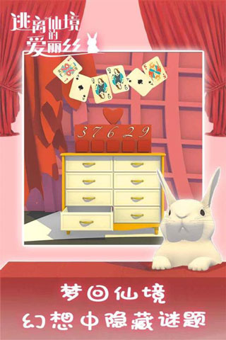 使用钥匙打开图四大书左下角的黄色门前,需要先用闹钟唤醒门把手。粉红色门的密码解开后,游戏将进入寻找兔子的环节。兔子们藏在以下位置:图一的橙色茶杯上和扑克牌下方各有一只;图二的茶话会茶壶里和粉色房间的大黄色箱子中各有一只;图三的最大钟表上和漂浮书本下的桌子上各有一只;图四大书右侧靠近绿色柜子处有一只;最后一只兔子则藏在粉红色门后。