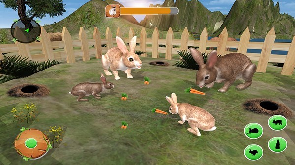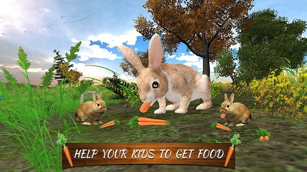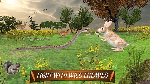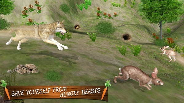 2、游戏里玩家将化身为一名兔子在残酷的自然环境里生存,除了要定时吃东西外还要小心横行霸道的野兽并避开它们,游戏提供了多种不同类型的兔子供玩家去扮演