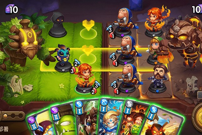 其次,游戏打破了传统卡牌对战的回合制模式,采用同时部署、同时出卡的对战机制。这种创新让玩家的思考重点从预测对手行动转变为即时战术部署。2X3的紧凑棋盘设计加速了游戏节奏,让对战在初期就能进入白热化阶段,既考验策略又适合碎片时间游玩。