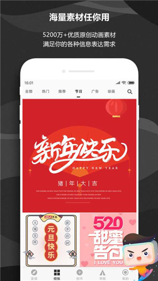 模板:提供各式各样的模板素材,涵盖多种风格和场景,让你轻松选择并快速完成创作。