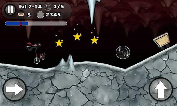 3、或许在老外的眼中,忍者就是杂耍者的最总形态,所以忍者在欧美出品的游戏中一直扮演者高级杂耍者的角色。这款《小轮车特技》也是如此,在这款游戏中,黑衣忍者骑着自行车在崎岖的坡道上各种杂耍,真是逗极了