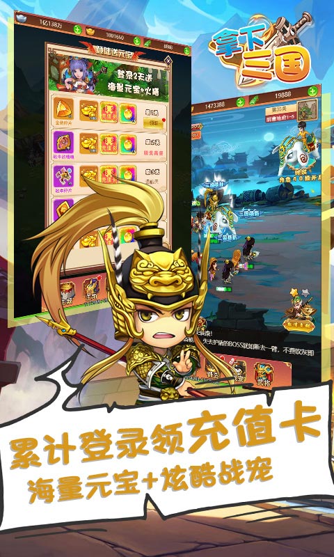 拿下三国无限元宝版是一款很优秀的三国回合制手游,游戏的画面还是精美的,玩法内容丰富,Q版的角色风格,剧情也非常的还原,玩起来很有趣。游戏平衡性良好,氪金玩家和休闲玩家都能找到适合自己的游戏方式。