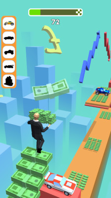 试穿股票经纪人的形象。不要一路掉钞,您一定会成功。别忘了在成功之路上抢购!游戏支持多人联机模式,可以和朋友组队完成运输任务,或者参与限时举办的"钞票争夺战"。每日登录奖励和季节限定活动让游戏保持新鲜感,社区内还经常举办创意关卡设计大赛。