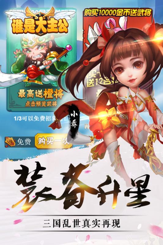 《谁是大主公》是一款内容丰富、玩法多样的策略游戏。游戏剧情跌宕起伏,环环相扣,玩家将面对数十个各具特色的BOSS,收集百余件强力装备,招募超全的三国名将,挑战近千个精心设计的关卡。游戏还特别设计了百人阵营大战玩法,配合华丽的武将技能、天赋技和组合技,为玩家带来震撼的视觉盛宴。独特的九州茶馆聊天系统,配合鲜花、臭鸡蛋等趣味道具,让社交互动更加生动有趣。游戏品质堪比专业APP,让玩家享受帝王般的游戏体验!新玩家登录即送强力武将关羽,更有丰厚奖励等你来拿!