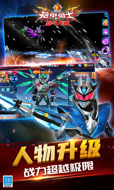 • 多种升级方向,占榜谁与争锋!每个角色都有独特的技能树,玩家可以自由培养打造专属铠甲勇士。