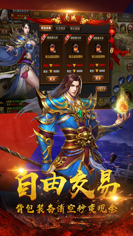 1、采用了最刺激的即时PK玩法,不管是争夺世界BOSS,还是神兽BOSS,都可以直接用武力决斗,即时、热血、激情