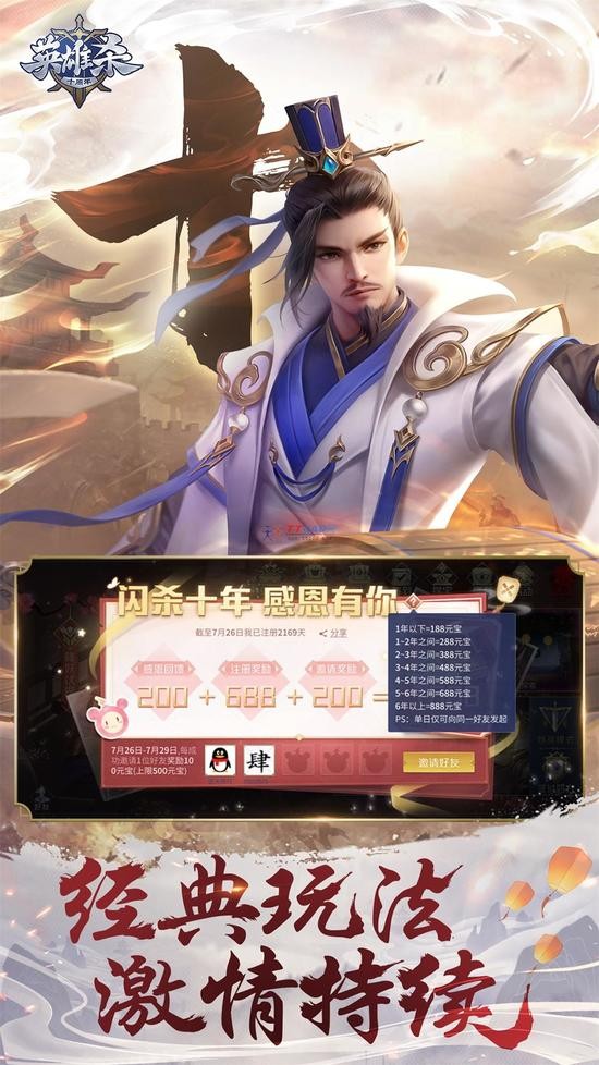 英雄杀旧版本由腾讯游戏倾力打造的一款竞技桌游。游戏还原中华英雄世界,革新性融入英雄养成、技能搭配、关卡挑战及好友组队等玩法。游戏画面精美细腻,每个英雄角色都经过精心设计,拥有独特的技能特效和专属台词。快加入英雄杀的世界,开启智造英雄,杀出天下的新时代!英雄杀手机版是由英雄杀原班团队历时一年封闭开发精细打造而成,在手机版上的正统之作。在保持PC端经典模式的基础上增加闯关模式,让玩家可以随时随地享受游戏的乐趣。
