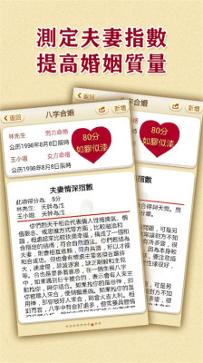 3、八字合婚是一款通过八字来测试姻缘是否合适的手机软件,里面有很多关于八字的讲解,经常关注八字的朋友们千万不要错过这款软件哦,在这里你可以测试匹配一下自己的姻缘呢,而且很专业的,感兴趣的朋友们快来下载体验吧
