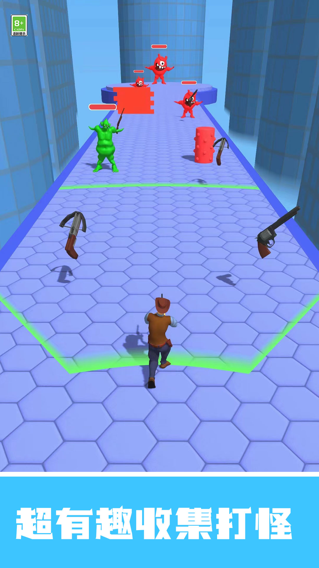 这是一款极具挑战性的动作射击游戏,玩家将沉浸在一个充满危险与机遇的3D世界中。游戏提供了多种武器选择,从传统的枪械到未来感十足的能量武器,每种武器都有其独特的射击手感和战斗效果。你需要不断召集更多的枪手加入你的队伍,在枪手冲刺跑酷的过程中消灭沿途的怪物。随着队伍的不断壮大,你将获得更强的战斗力,最终向终点发起冲刺。游戏中的成长系统非常关键,通过收集路上的各种强力武器来武装你的队伍,同时还要小心躲避各种致命机关,这些机关可能会在瞬间削弱你的战斗力。游戏的操作手感流畅,战斗节奏紧凑,让玩家能够体验到真正的超能英雄战斗快感。