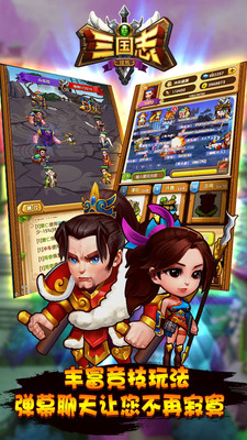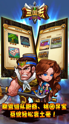 2、游戏的独特Q版画风、绚丽特效爽爆荧屏,联盟组队跑商、桃园寻宝系统轻松变土豪