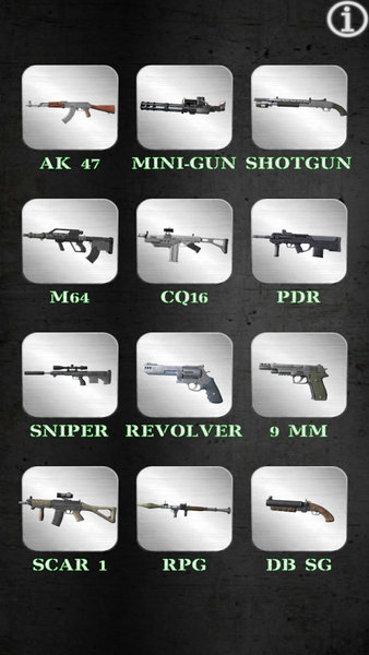 这款游戏将整个武器库装进了你的口袋。通过手机屏幕,你可以随时体验把玩各类枪械的乐趣。游戏操作简单直观:从主界面选择心仪的武器,轻触屏幕即可开火。特别值得一提的是,游戏支持体感操作,你可以像使用真枪一样晃动手机来完成换弹动作。如果你更喜欢轻松体验,还可以通过点击无限符号切换为无限弹药模式。点击弹药箱图标则会触发标准换弹流程,这些细节设计都让游戏体验更加丰富多元。