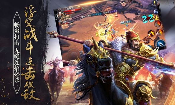 2、同时,有别于传统ARPG玩法,《马踏千军》手游无双大招威力十足,克敌制胜更加轻松。威力强大的无双技足以瞬间清屏小兵,能助你在千军马中也能打的风生水起。而几近割草式的战斗,基于优秀的战斗引擎,战斗打击感依然不俗。再配以华丽的无双特效、炫酷的招式特写,让你在击破千军的同时,成就感满满