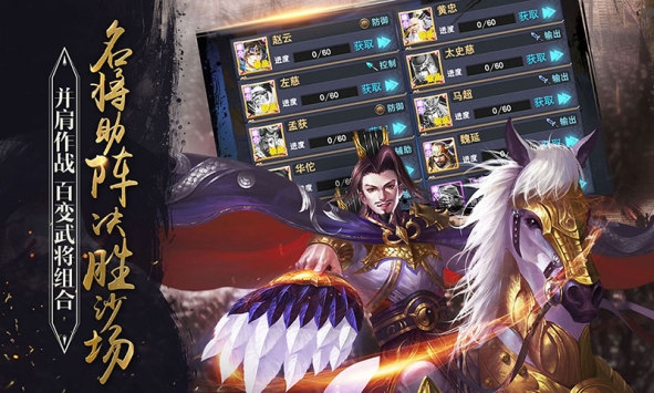 史诗游戏武将,等待玩家成为侯爵、将军,名垂青史,立下赫赫战功;玩家可以通过收集碎片来解锁更多传奇武将,组建属于自己的梦幻阵容。
