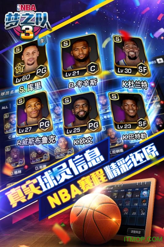 4、美职篮梦之队3是DeNA最新推出的联手《NBA梦之队》人马打造的一款nba类休闲体育竞技类手机游戏,Q版卡通的游戏人物,逼真的还原真了球员形象,实时竞技的游戏玩法,和其他玩家同台竞技比拼,真正做到“我的比赛