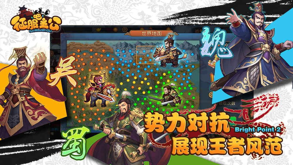3、《征服吧主公》以小局战斗进行,匹配实力相近对手,身为一方势力的主宰者,你需要发展城池,招兵买马;通过精打细算的内政管理,合纵连横的外交手段,神鬼莫测的用兵技巧,与各路诸侯逐鹿中原,争夺天下霸权