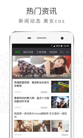4、精品资讯 游戏视频、热门头条、美女cos、大神,全面的游戏资讯,为你一网打尽