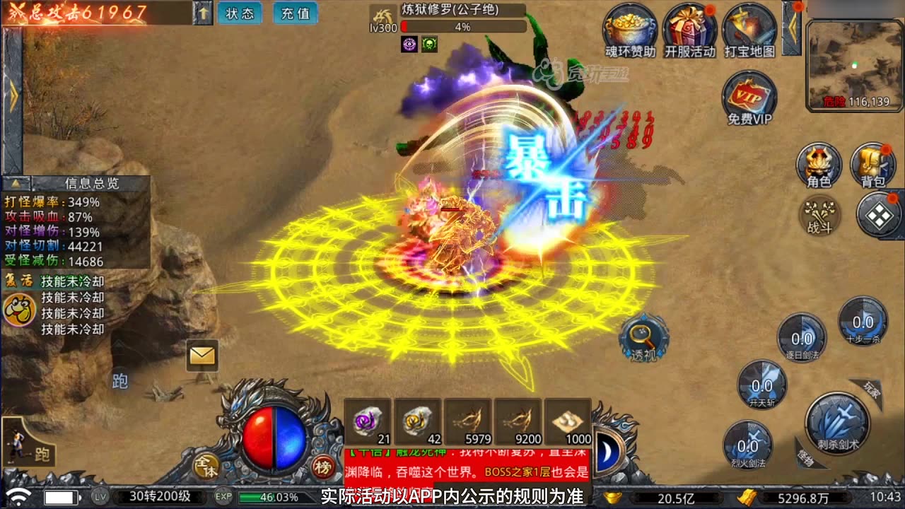 游戏拥有数十种炫酷技能特效,搭配丰富多样的武器装备系统,让你在战斗中尽显王者风范。经典的传奇游戏玩法完美复刻,熟悉的竞技场对决带你重温当年的热血情怀。参与激烈的沙城争霸战,踏上巅峰历练之路,成就最强英雄传说。独特的转生系统让游戏更具深度,等级清零但属性保留,战力大幅提升,大大增强了游戏的可玩性。海量任务系统等你挑战,每个任务都经过精心设计,带来不一样的游戏体验。震撼的战场画面完美还原经典攻沙场景,唤醒你年少时的热血记忆。开放式的世界地图任你探索,每个区域都隐藏着不同的挑战与机遇。