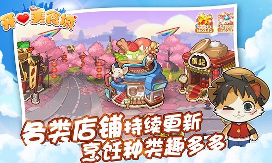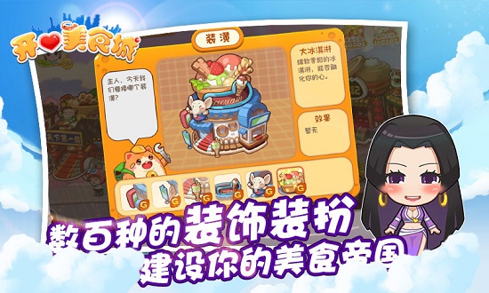 2、开心美食城是一款可爱动漫画风的美食题材经营游戏,打造一家餐厅,制作世界各地的美食,努力将店铺的规模扩大,成为美食城最受欢迎的餐厅,模拟真正的经营过程,体验最极致的乐趣,感兴趣的话就来下载吧