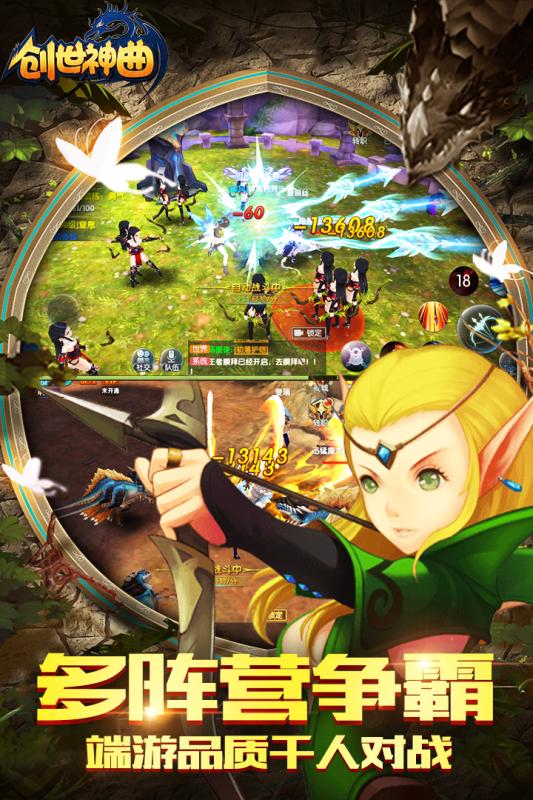 5、《创世神曲》是一款采用西方中世纪精致绚丽画风打造的魔幻RPG,男女三种职业、六个角色可供玩家选择,装备完全靠合成,翅膀坐骑特效绚丽,PK讲究策略和操作,让你感受端游般的游戏体验