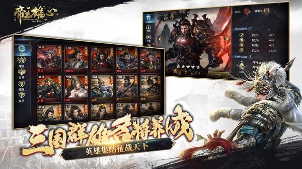 1、帝王雄心是一款非常精彩的三国战略手游,游戏采用写实的画面打造了震撼三国战场,三国群雄任你选择,海量兵种自由搭配,万人国战同屏竞技,给你带来一场指尖盛宴
