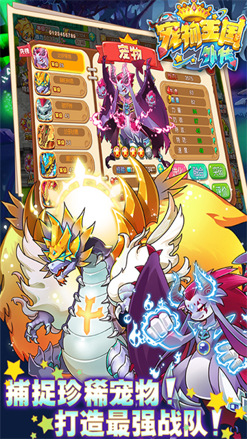 1、宠物王国外传最新版是经典JAVA游戏宠物王国的续篇,数百种宠物尽数还原,技能自由搭配,玩法丰富多彩,回合制战斗更具策略性,带你重温童年回忆,全新的故事等你来体验,快来下载加入吧