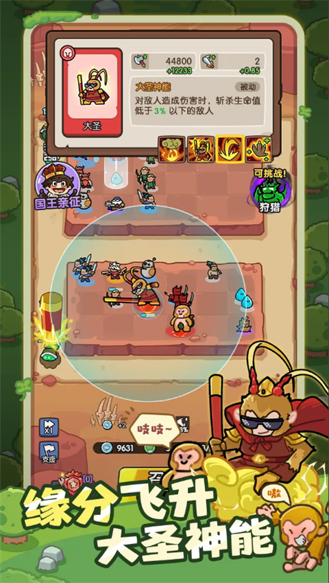 此外,游戏新增了"财神到"国王皮肤,该皮肤拥有独特的技能效果:每攻击50次(连发、齐射不计算在内),可以恢复身边1格内随机1个神刷英雄10%的魔力值,为团队提供强力支援。