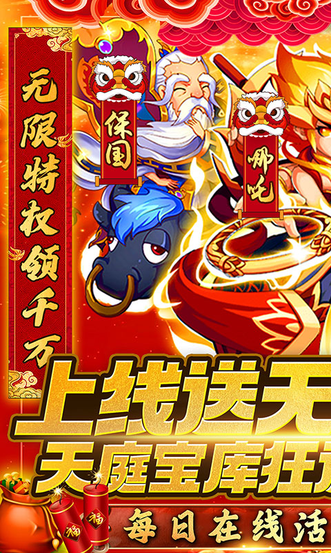 每日在线+活跃得天庭宝库百连抽,累积抽奖共送23W充值!