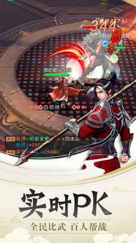 3、挂机升级易爆,超高爆率,各种最佳装备等着您拿,团队交友,神仙交友,甜蜜双修
