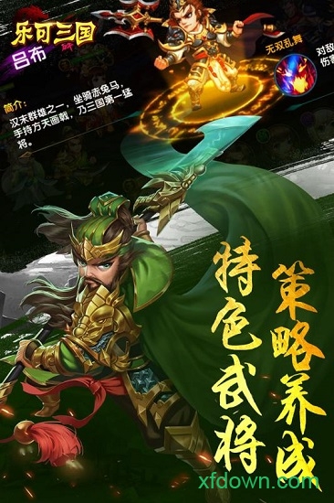1、乐可三国是一款Q版卡通角色以三国剧情玩法策略手游,游戏虚构了极其宏伟的三国战场,更是登场了许多经典的武将,作为主公,加强我放实力极其重要,需要招募高级武将,通过副本关卡,随心搭配阵容挑战,获取资源,提升城池建筑,玩法极其烧脑趣味