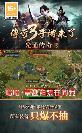 2、《传奇3g》是一款已经典传奇打造的本,在游戏中有着全新的游戏画面呈现给玩家,而且在其中还有三大职业可供玩家前来挑选,而且在这里还有多种全新玩法等着你来一一体验,如过你喜欢传奇系列的话,那么就千万不要错过了