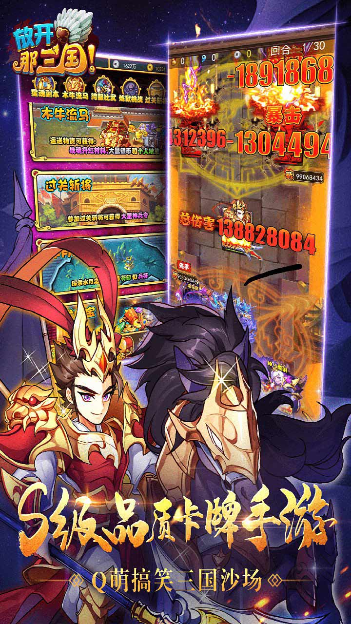 3、放开那三国最新版是为玩家们提供的放开那三国折扣充值福利,超低的折扣,最优惠的福利等你体验。丰富多样的萌系卡牌,极致Q版的三国角色,更多出色的武将卡牌让你可以自由选择搭配,还有酷炫的合体大招技能,带给你不一般的战斗体验